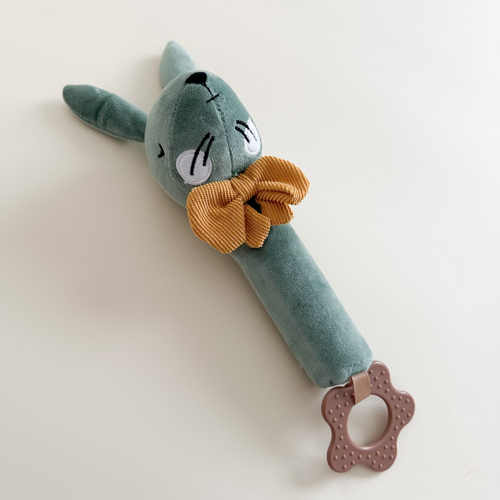 - 1 mordillo de silicona antibacteriana y madera natural, libre de BPA, no tóxico.