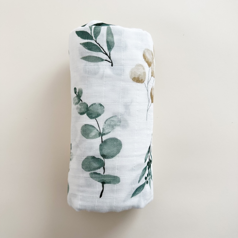 • 1 swaddle de muselina, amplio y suave. Fabricado en 100% algodón.