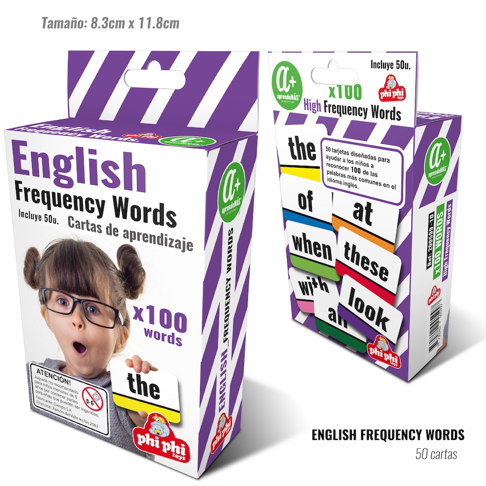 - English, frequency words. Tarjetas diseñadas para ayudar a los niños a reconocer las 100 palabras más comunes en el idioma inglés, ideal para jugar a armar frases.