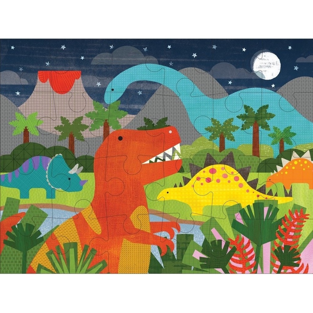 Puzzle de 24 piezas grandes, para armar sobre el piso y luego jugar con la imagen! El rompecabezas tiene una ilustración con dinosaurios. 🦕🦖